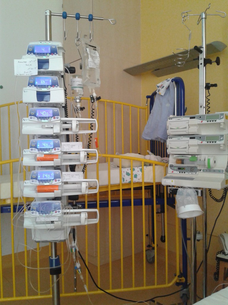 Am nächsten Tag, am 13.3.14, begann also der 1.Chemoblock. Ich weiß noch, wie verblüfft ich über all die Infusomaten war, die neben dem Blutdruckmessgerät das Zimmer füllten. Doch sie waren von da an die treuen Begleiter in unserem zweiten Zuhause.