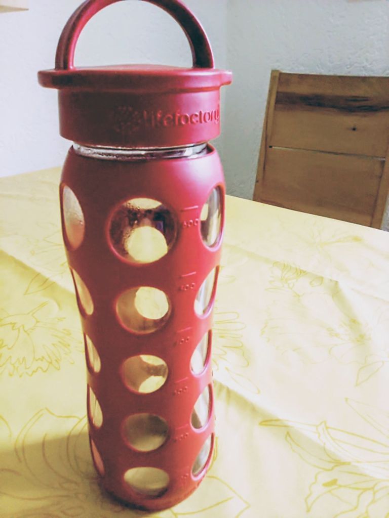 Kürzlich holte ich die Flasche hervor, die sich nun schon seit über zehn Jahren in meinem Inventar befindet. Damals suchte ich nach einer Glasflasche, die langlebig und robust ist. Und siehe da: Sie ist noch da. Nahezu unversehrt, von leichten Gebrauchsspuren mal abgesehen.