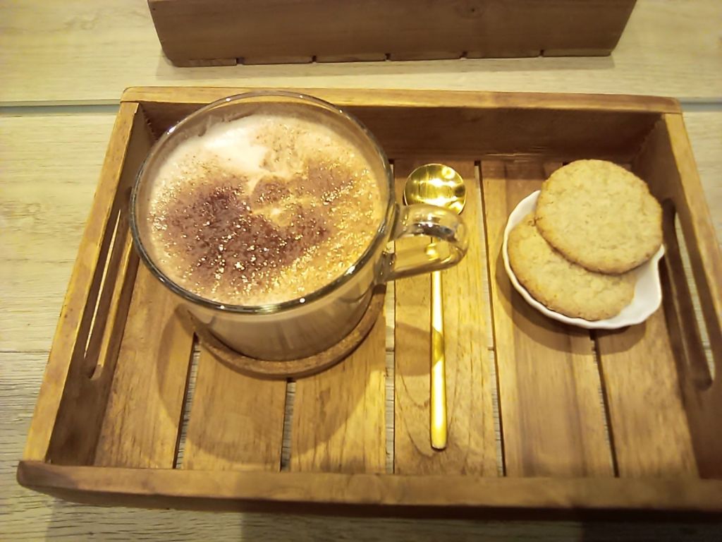 Da sitze ich nun vor diesem kleinen Tablett. Ein Kakao mit herrlich weichem Schaum und zwei Kekse dazu. Damit beginnt meine Me-Time, wie es mittlerweile überall heißt.