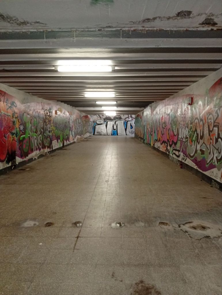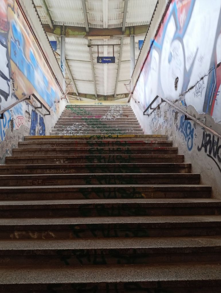 Als ich gestern durch einen Bahnhof hindurch ging, spürte ich Unbehagen. Irgendwie haben manche Unterführungen etwas Bedrückendes und ich nehme automatisch eine schnelle Laufgeschwindigkeit ein, weil ich zügig aus diesen Bereich heraus möchte.