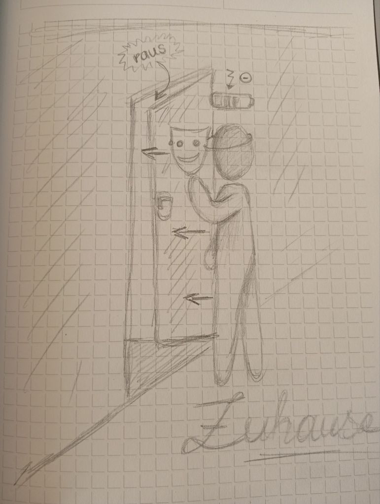 Betrete ich wieder mein Zuhause, kann ich dabei zusehen, wie die Anspannung aus meinem Körper entweicht: Die Schulter senken sich. Die Arme entspannen sich. Ich atme viele Male tief ein und aus – mein Körper ringt förmlich nach Sauerstoff, so flach und angespannt habe ich zuvor geatmet. Dann nimmt sie sich Raum: Die Müdigkeit. Mein Körper und mein Geist verlangen Ruhe. In der Regel kann ich dem nicht voll und ganz nachgehen – da möchte ein kleiner Mensch begleitet werden. Aber wir arrangieren uns. Meine Stimmung geht in den Keller. Alles, was ich zuvor aufgebracht habe, um im Außen zurecht zu kommen, kann ich mit einmal Zuhause nicht mehr halten. Ich werde still. Möchte kaum noch sprechen. Shutdown.